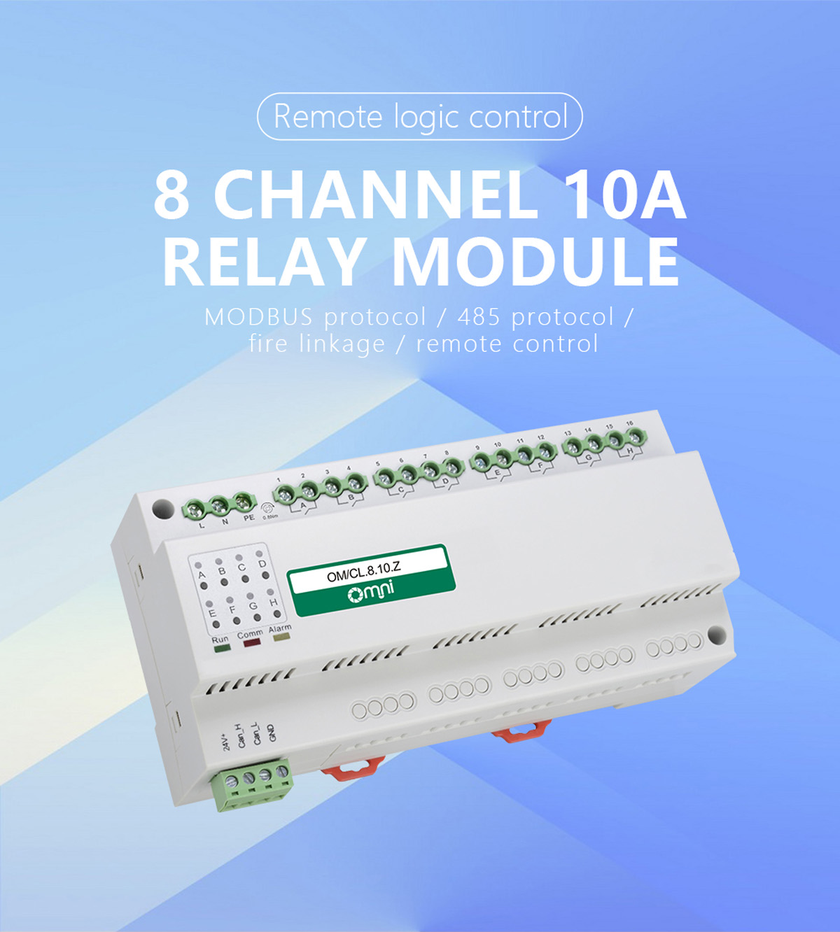 | Relay module is the driving and executing device for the on-off of the control loop in the intelligent lighting control system. The single-channel rated output current is 10A, 16A, 20A, and has the functions of zero-crossing detection, magnetic retention, light touch switch and manual emergency switch. |